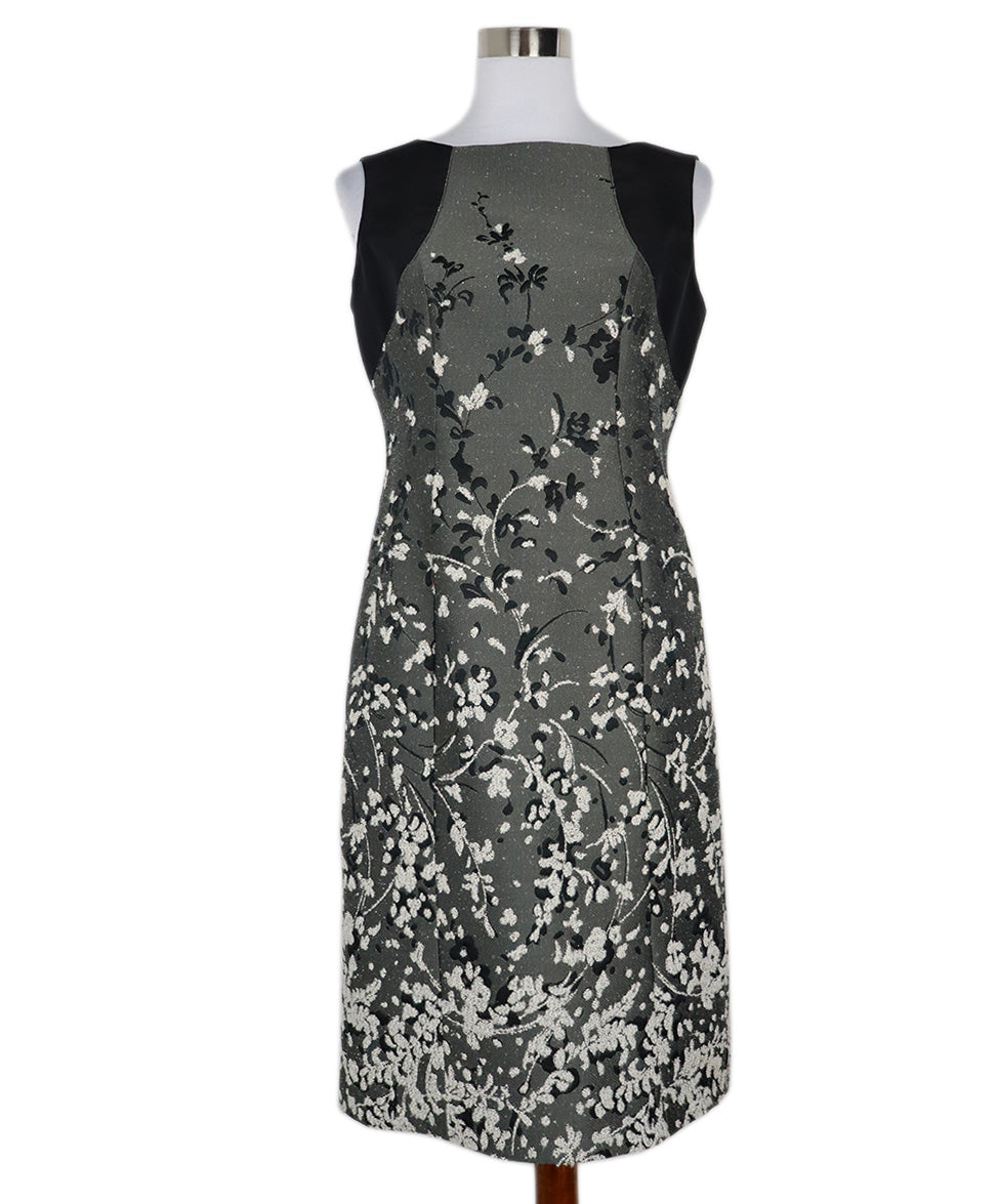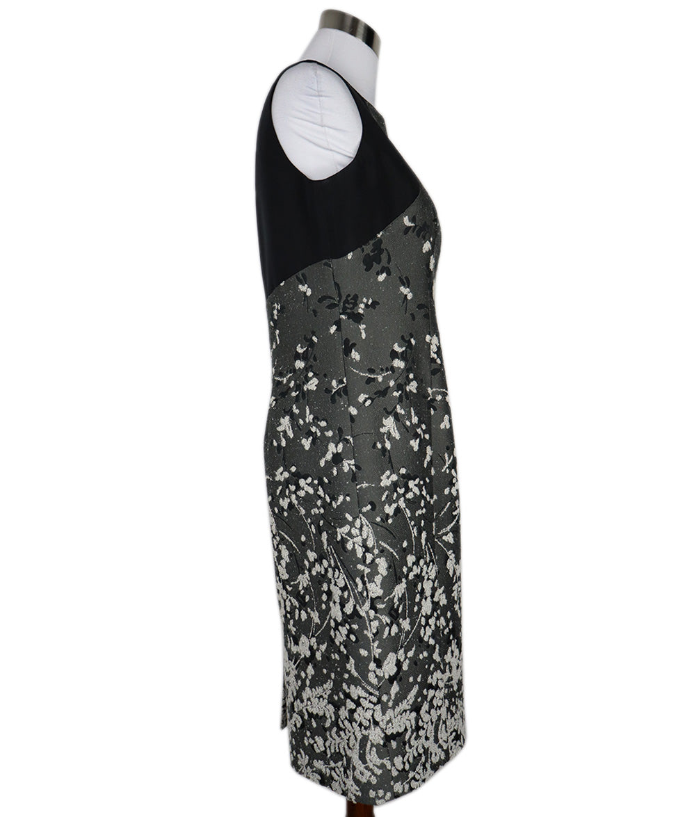 Carolina Herrera Black & Grey Floral Print Dress sz 10