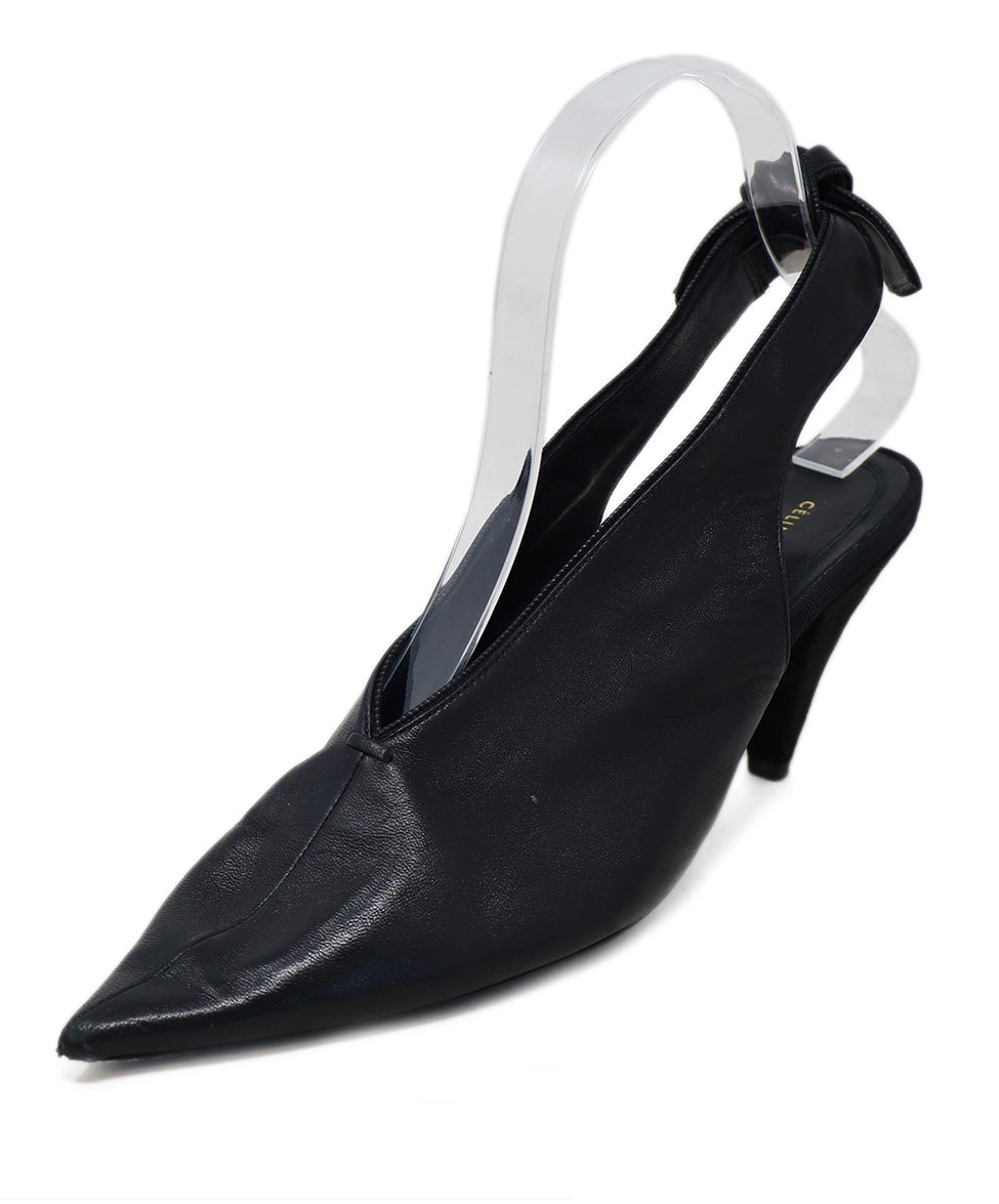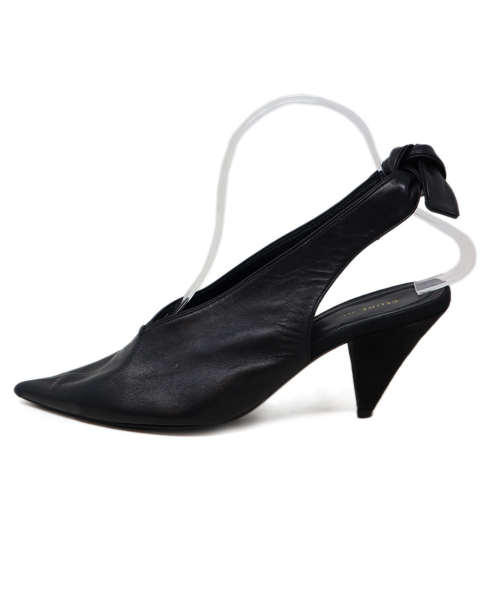 Celine Black Leather Bow Slingback Heels sz 6.5