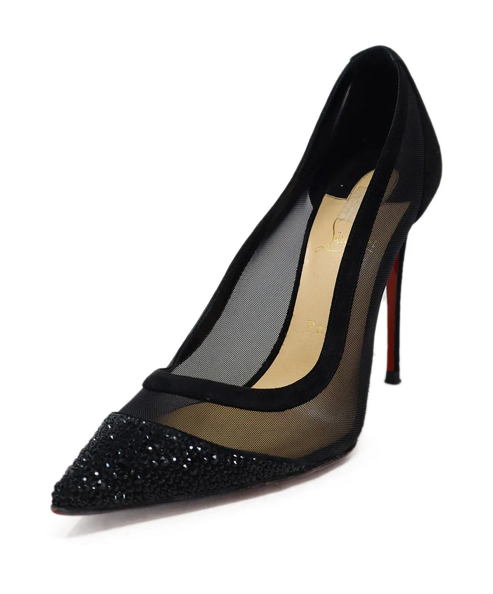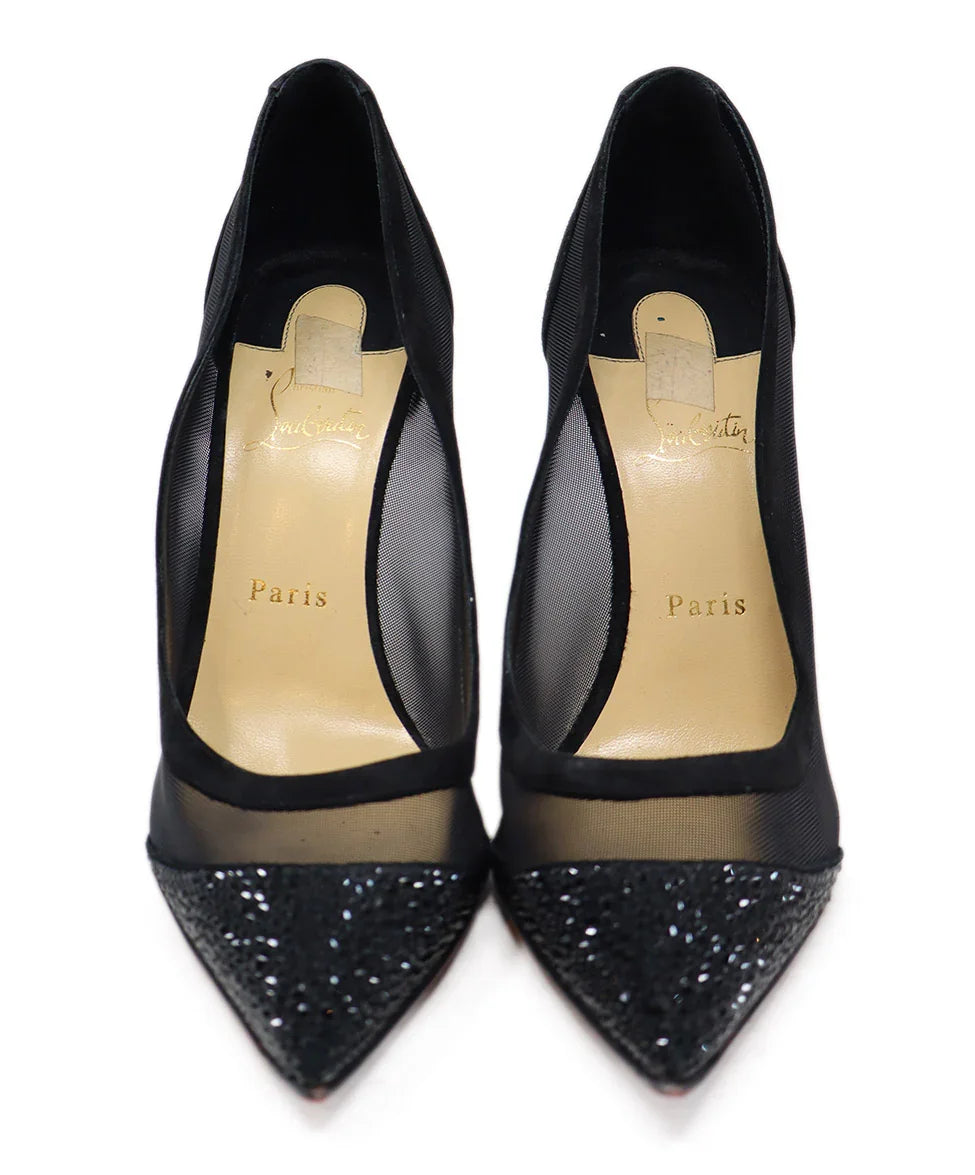 Christian Louboutin Black Suede Rhinestone Heels sz 11