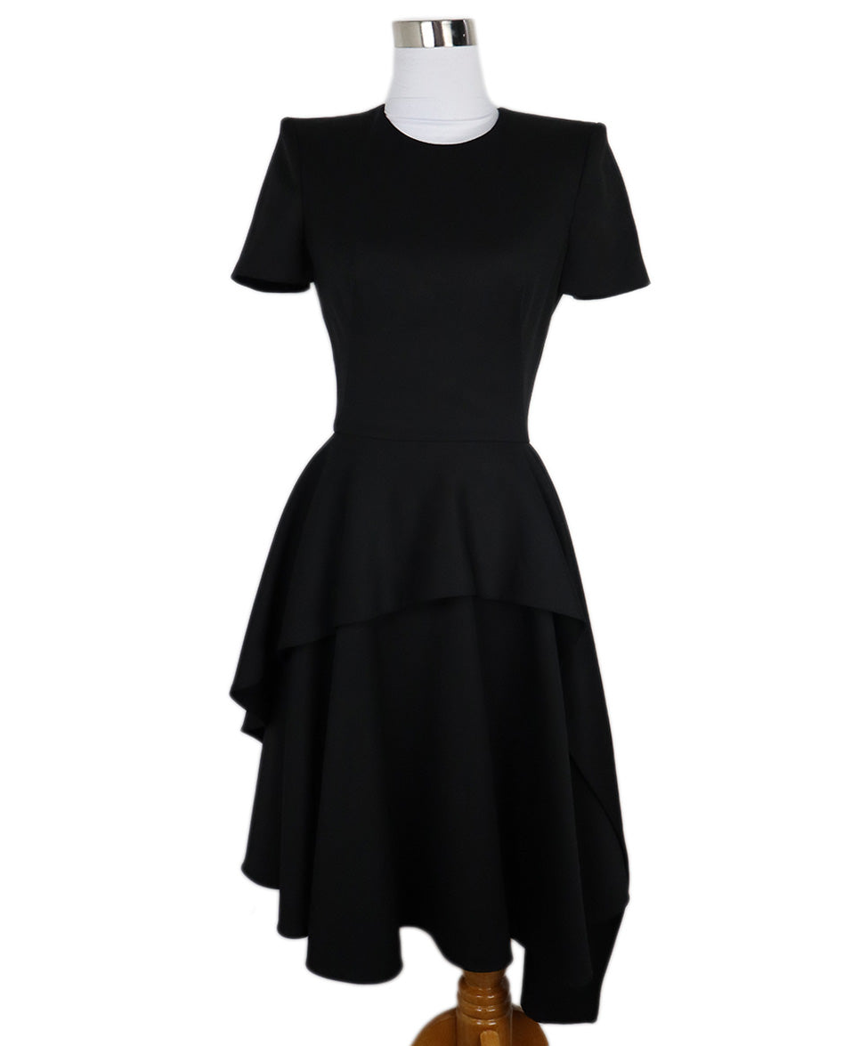 Alexander McQueen Black Wool Short Sleeve Dress sz 2