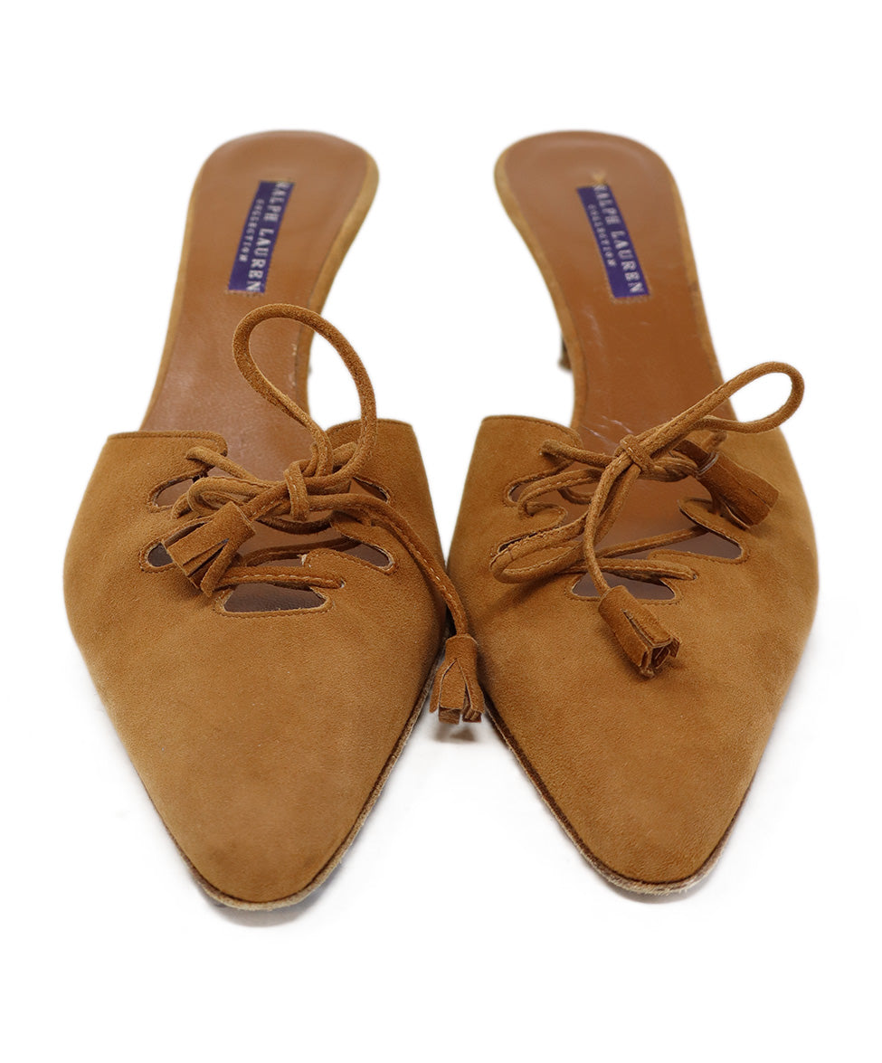 Ralph Lauren Brown Suede Lace Up Heels sz 8