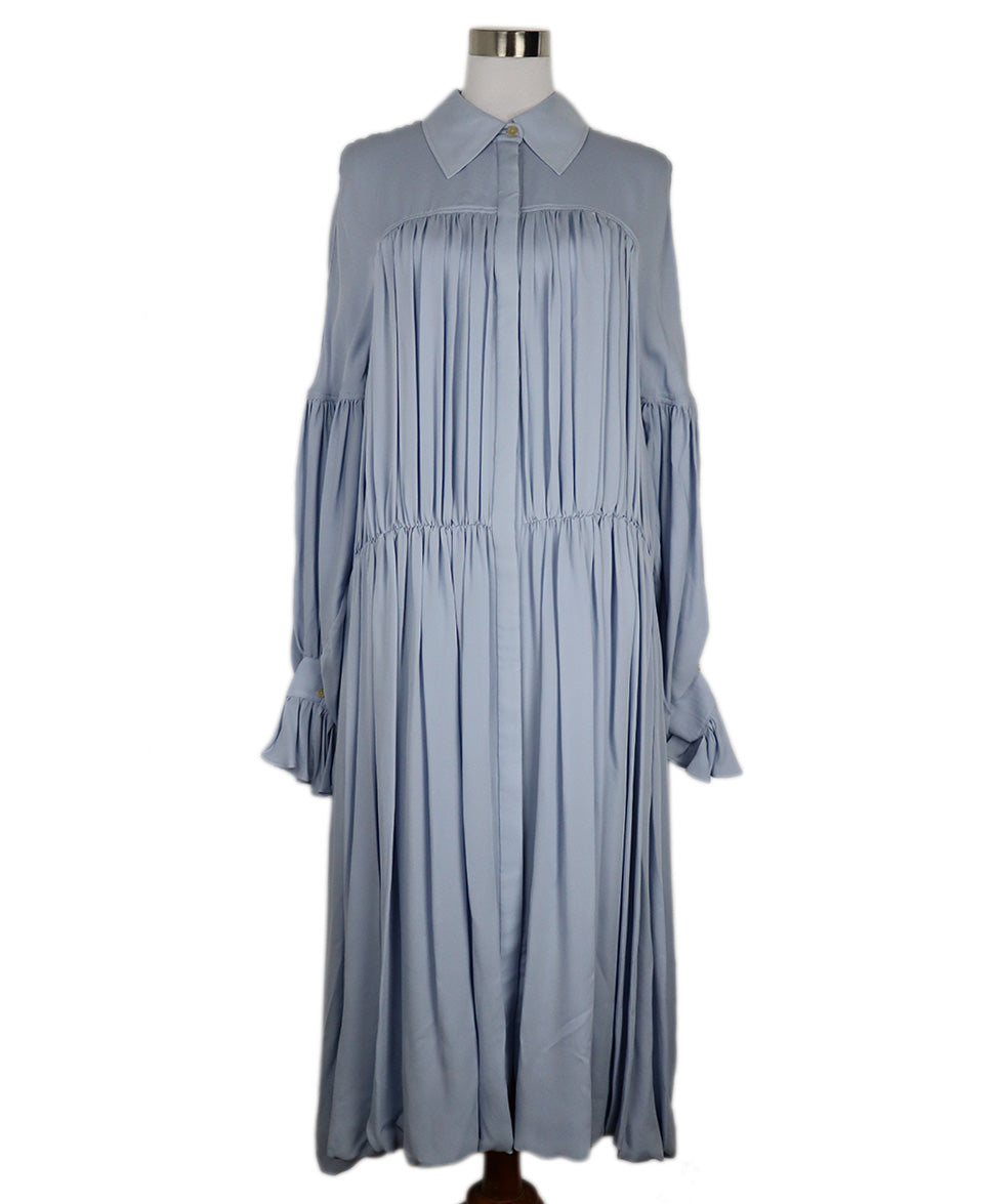 Khaite Long Periwinkle Pleated Silk Dress sz 12