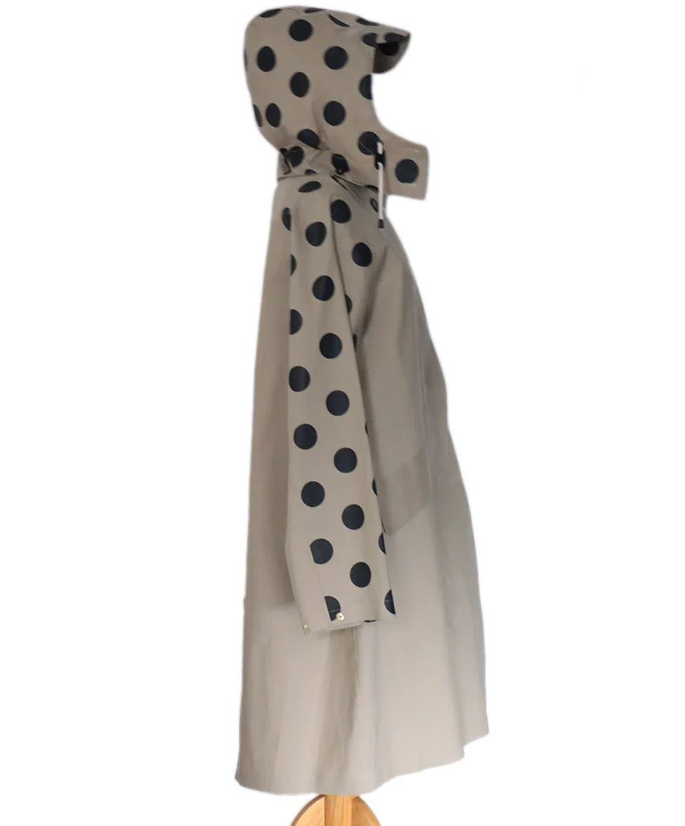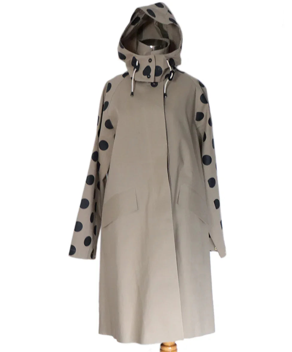 Mulberry Neutral Khaki Black Polka Dot Raincoat with Hood sz 8