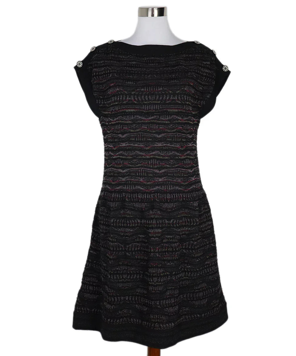 Chanel Black & Purple Striped Knit Dress sz 12