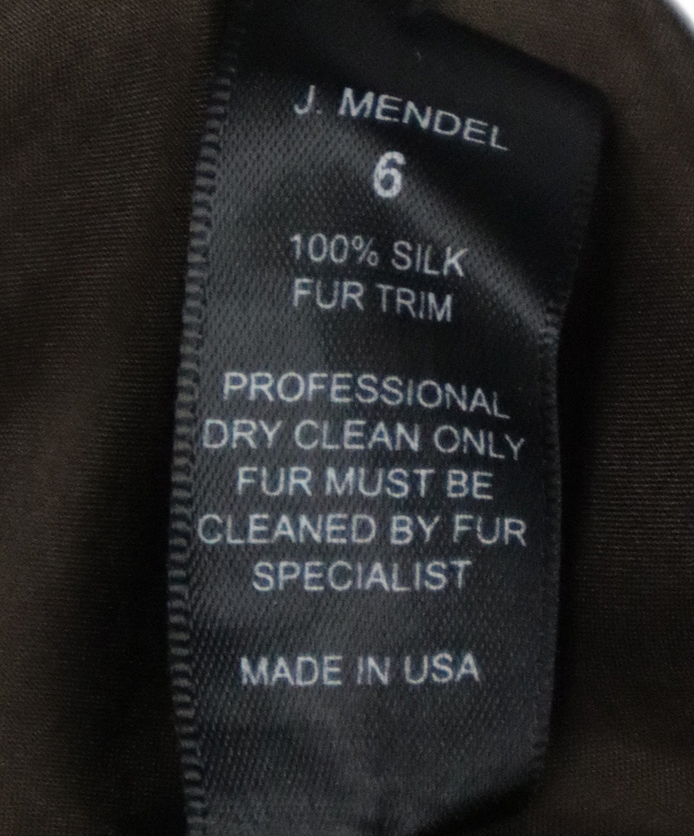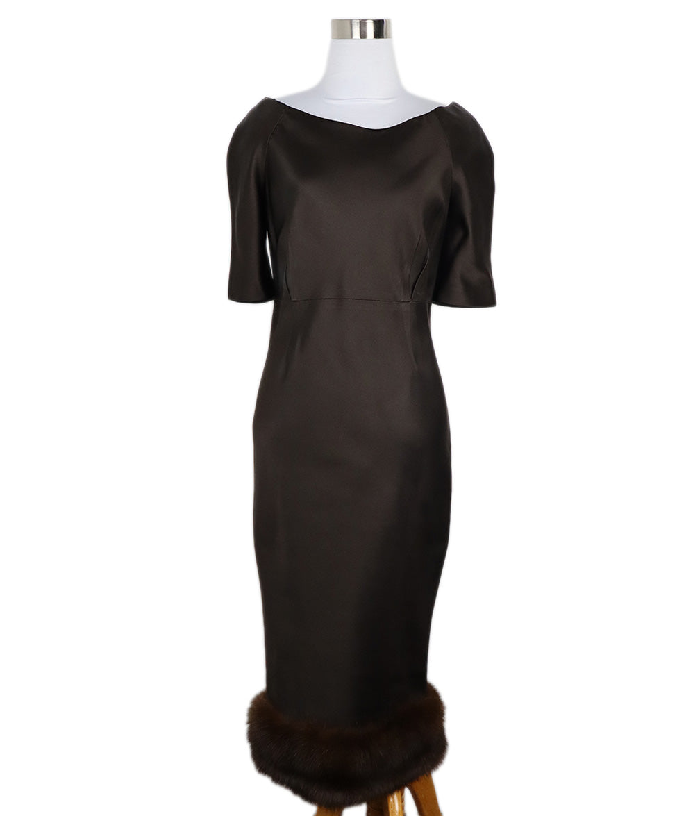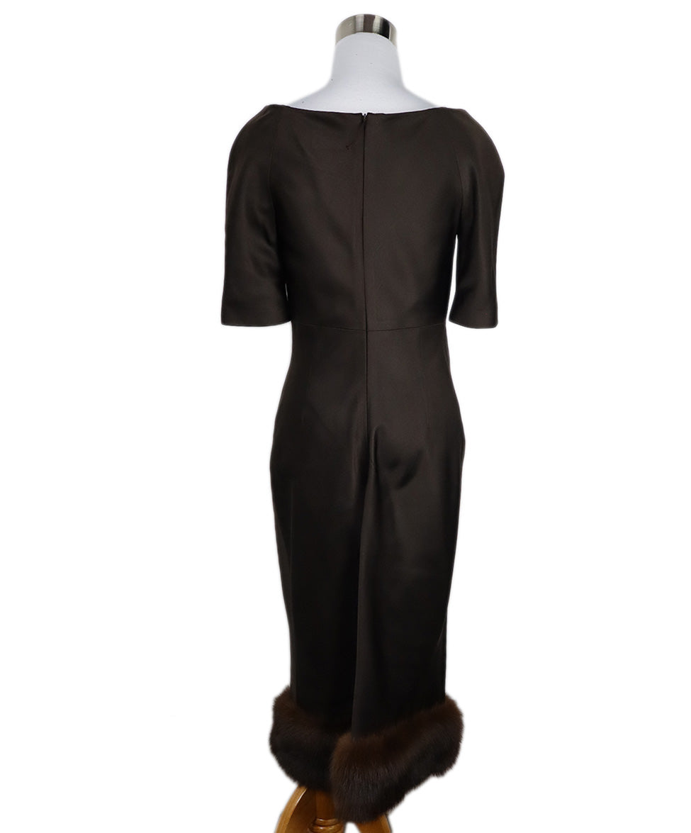 J. Mendel Brown Satin Sable Trim Dress sz 4