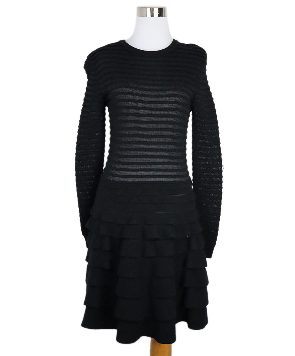 Valentino Black Wool & Cashmere Ruffle Dress sz 2
