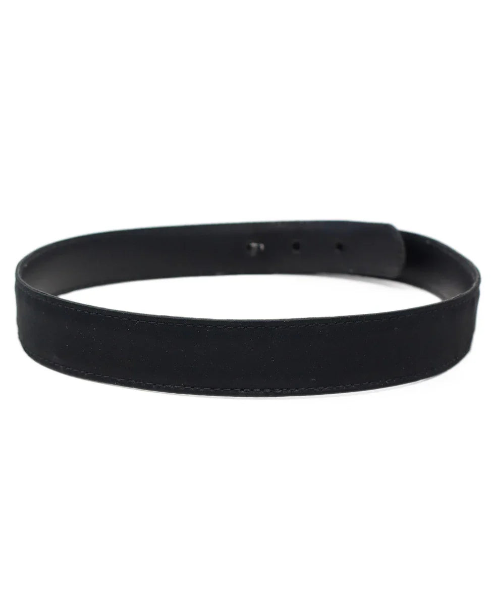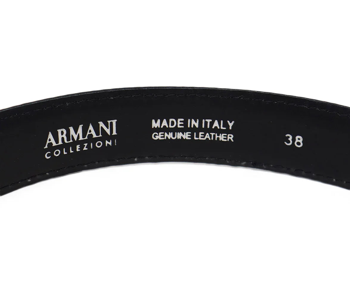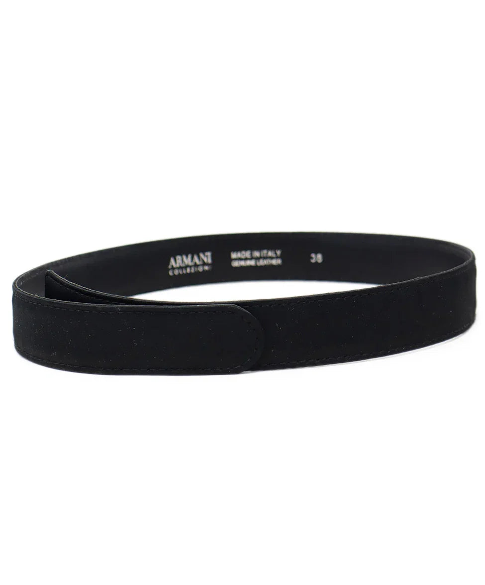 This Armani Collezioni black satin belt offers classic minimalism with expert craftsmanship. Its sleek design adds a subtle, polished touch to any outfit.