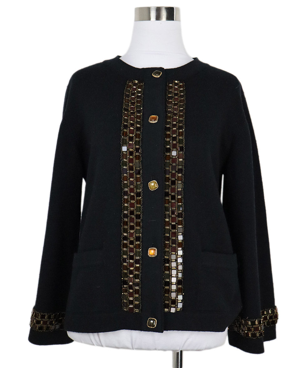 Chanel Black Cashmere Beaded Cardigan sz 8