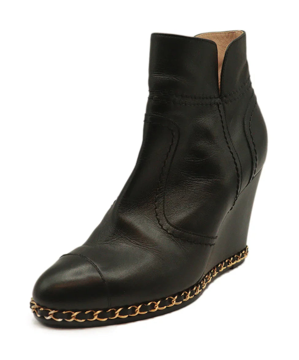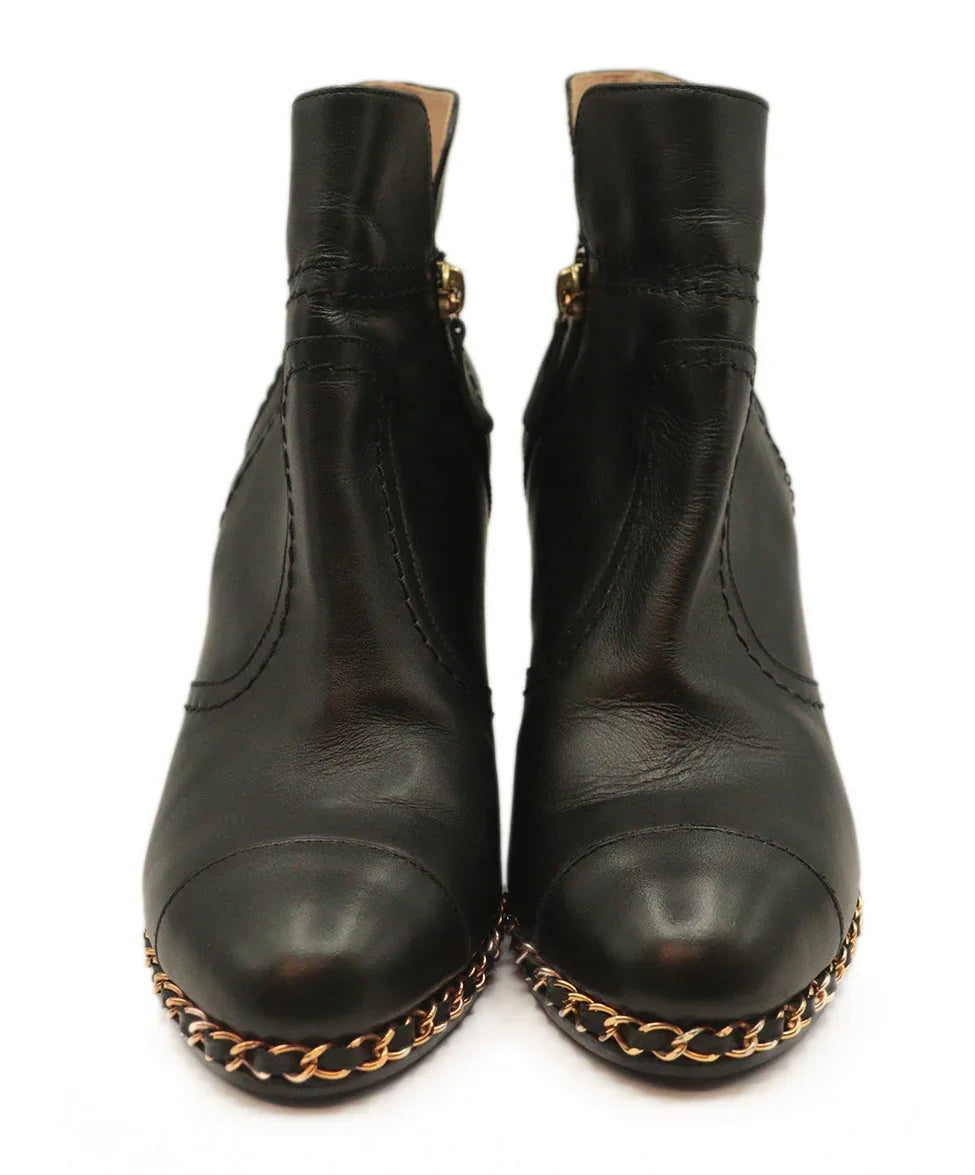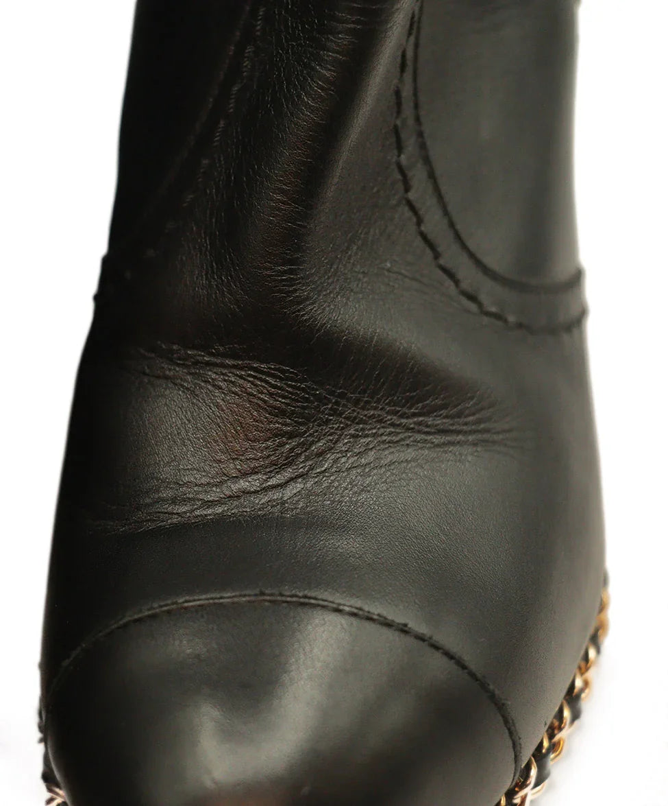 Chanel Black Leather Booties w/ Chain Trim sz 8