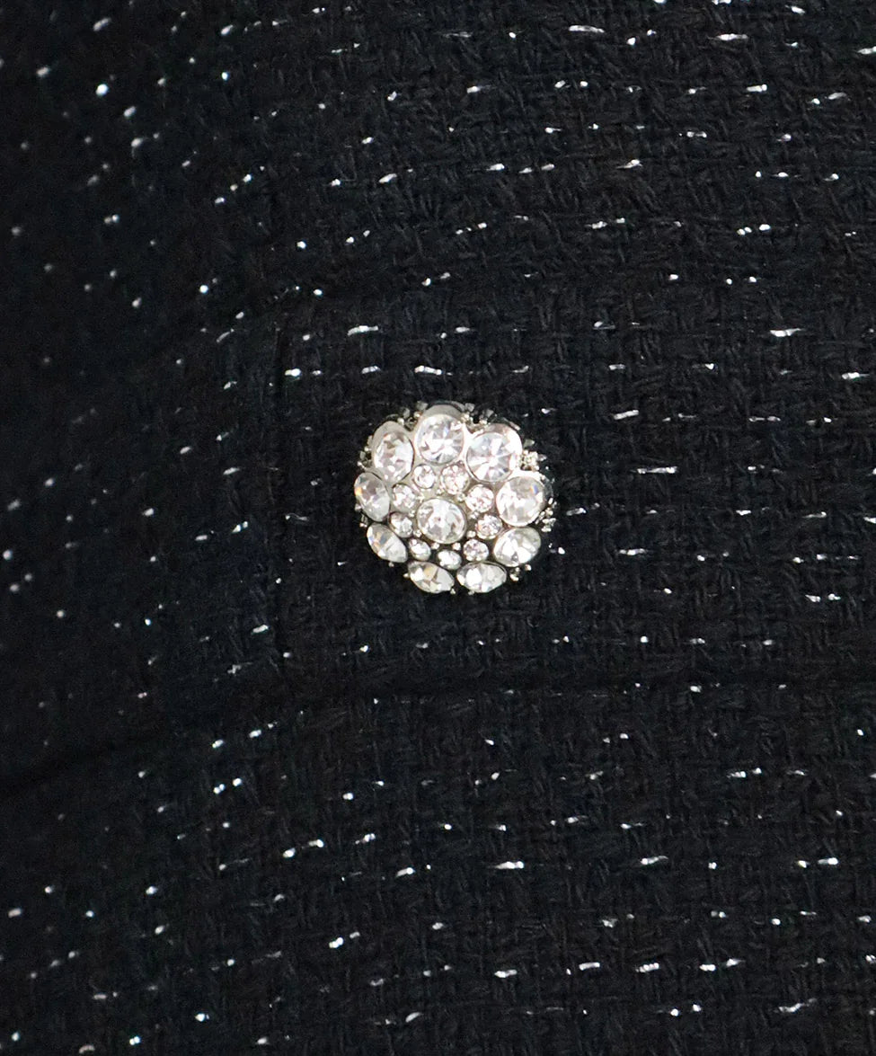 Shine bright in the Derek Lam black dress brilliantly accented with sparkling rhinestone buttons. This expertly crafted piece blends luxurious wool with shimmering silver tones, delivering a sophisticated yet glamorous look. The rhinestone buttons add the perfect touch of sparkle, making it ideal for special occasions where you want to captivate with polished elegance and undeniable bling.