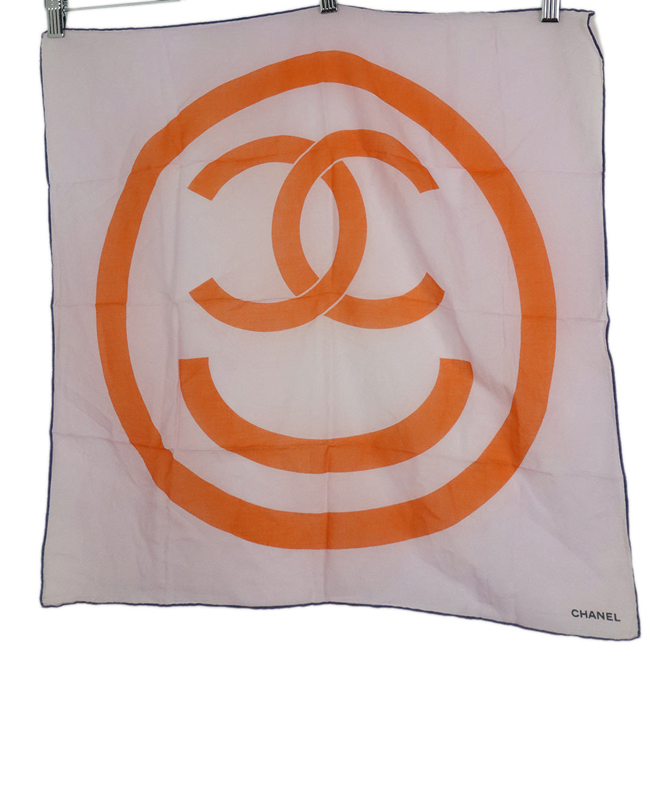 Chanel Pink & Orange Print Cotton Scarf