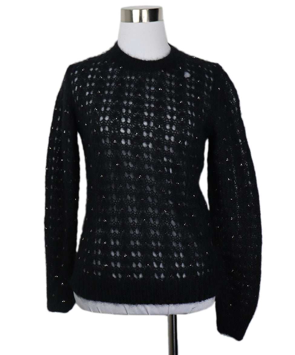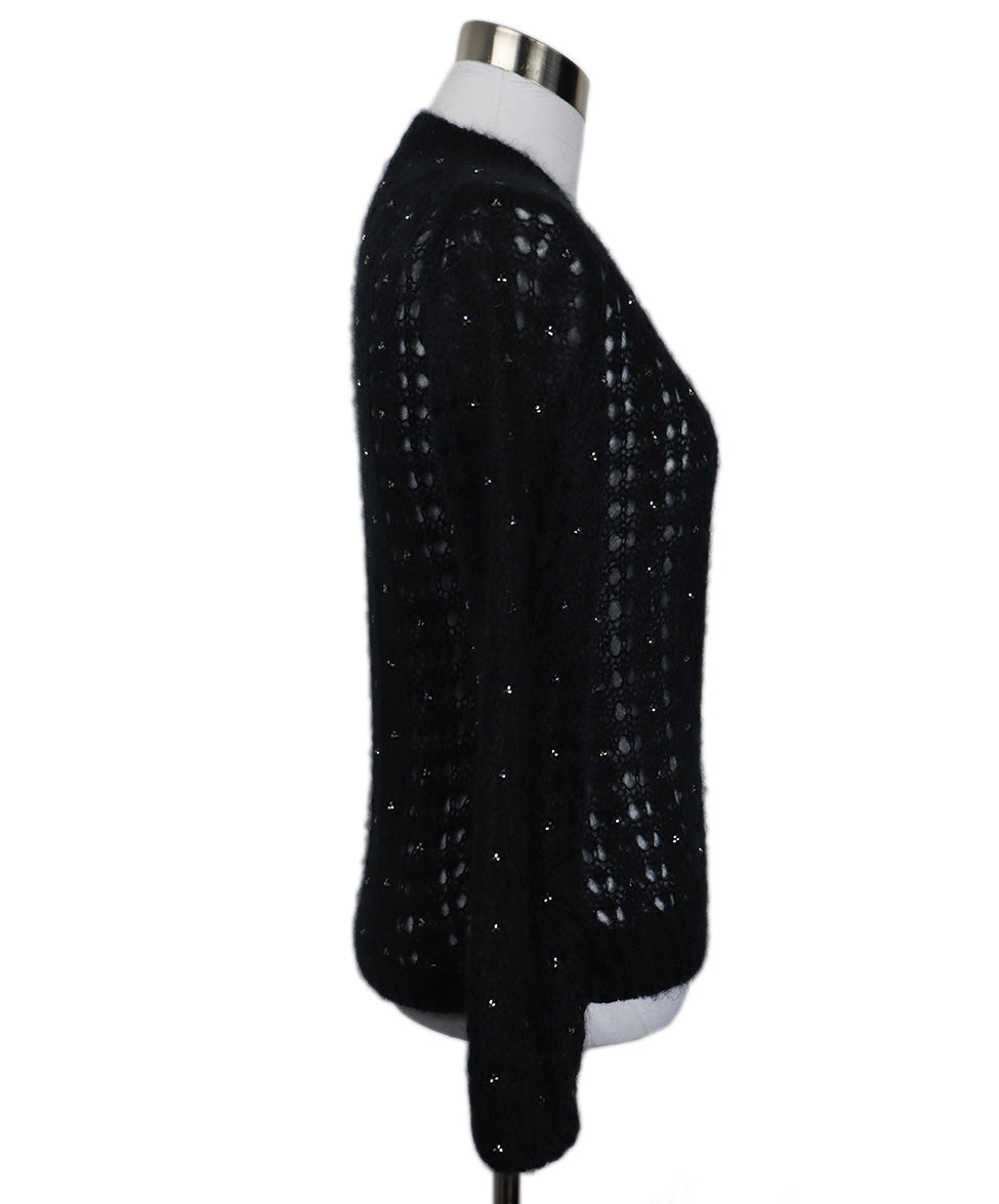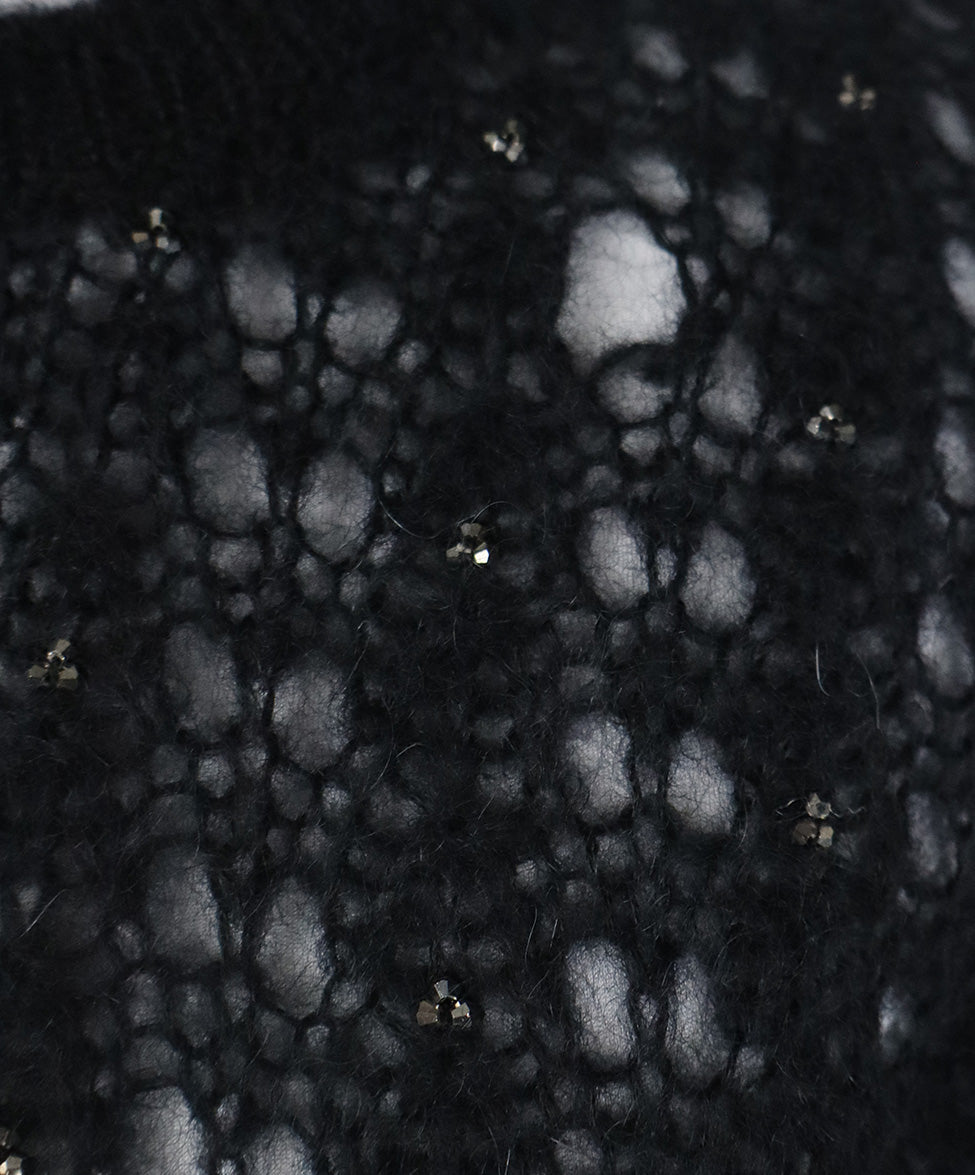 Saint Laurent Black Mohair Wool Sweater with Beaded Embellishment sz 2