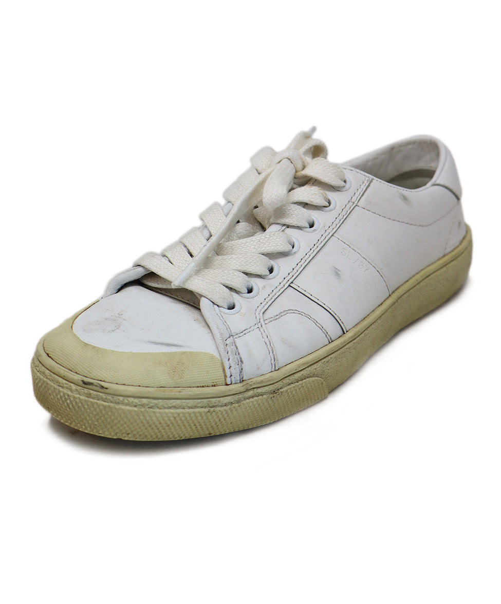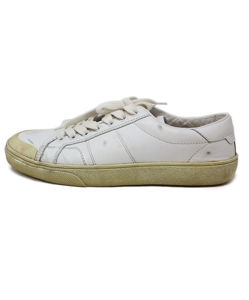 Saint Laurent White Distressed Leather Sneakers sz 6.5