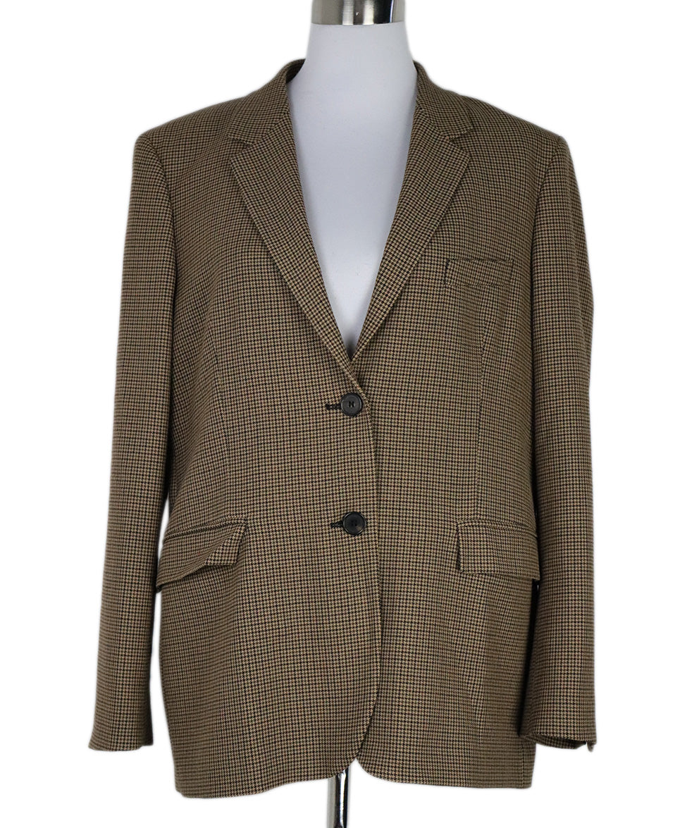 Gerard Darel Brown & Tan Herringbone Wool Blazer sz 14