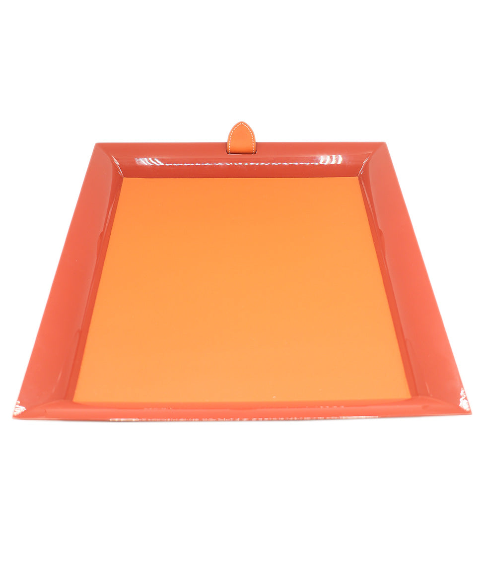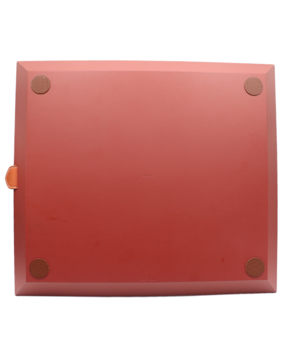 Hermès craftsmanship meets functional design in this striking rust orange tray. The combination of resin and leather creates a sophisticated piece that works equally well as a desk organizer, catchall, or decorative accent. A timeless addition to any refined space.