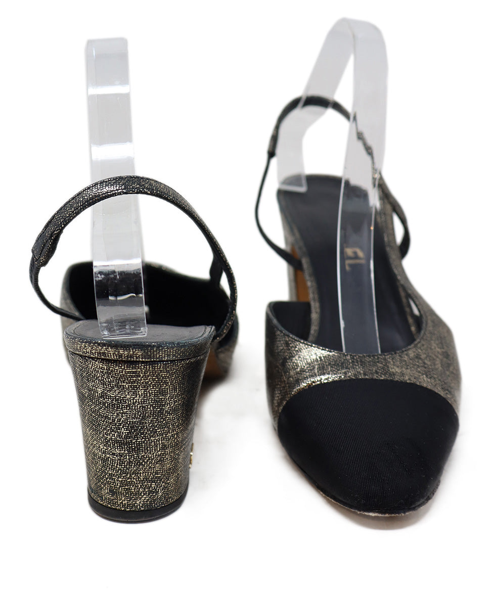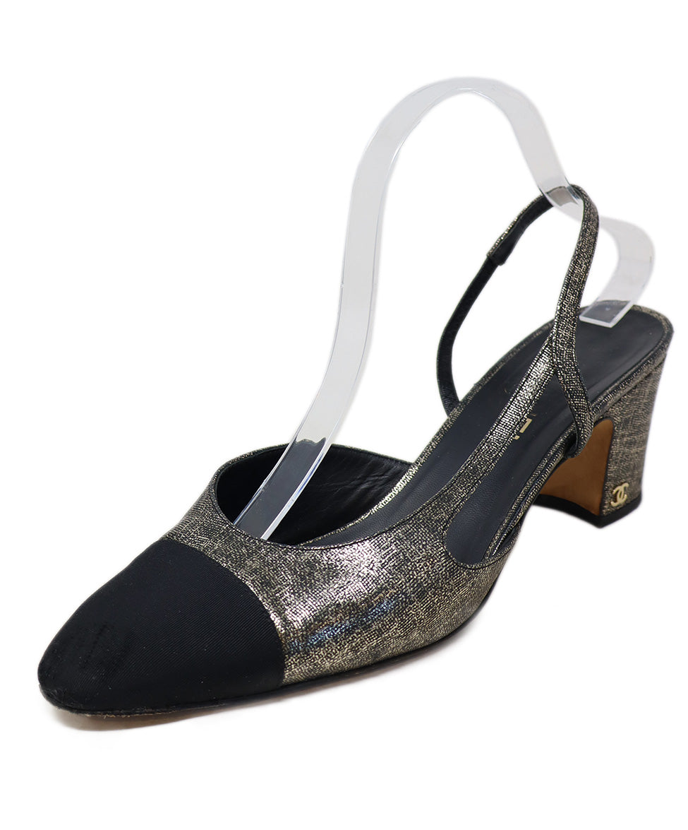 Chanel Gold & Black Leather Slingbacks sz 11.5
