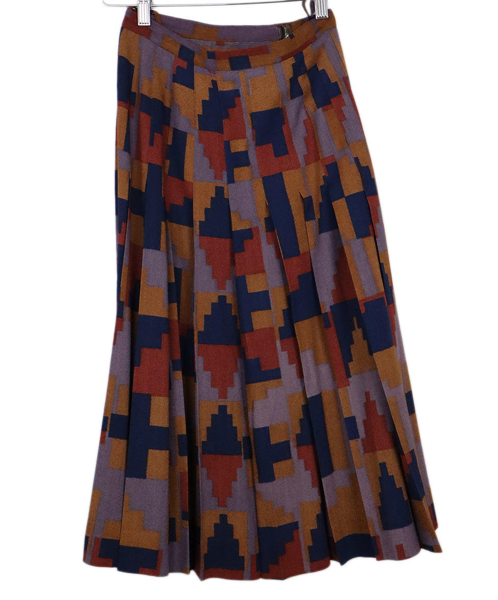 Saint Laurent Vintage Purple Blue & Orange Print Wool Skirt sz 0