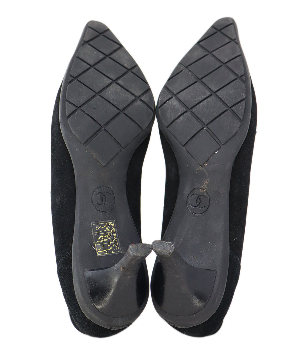 Chanel Black Suede Logo Stitching Heels sz 7.5