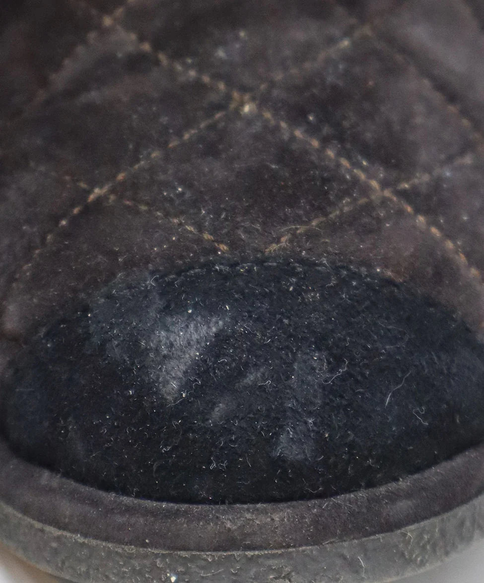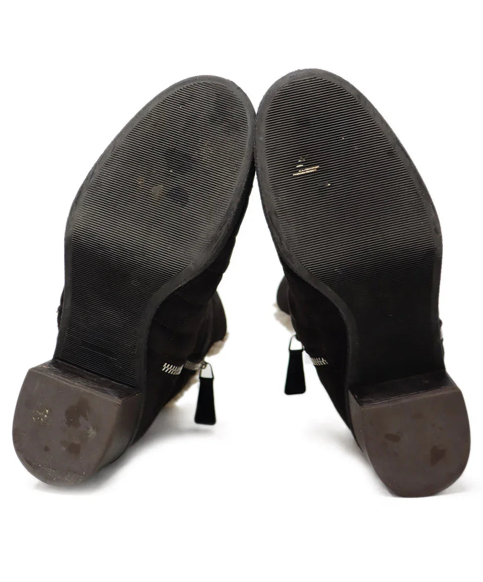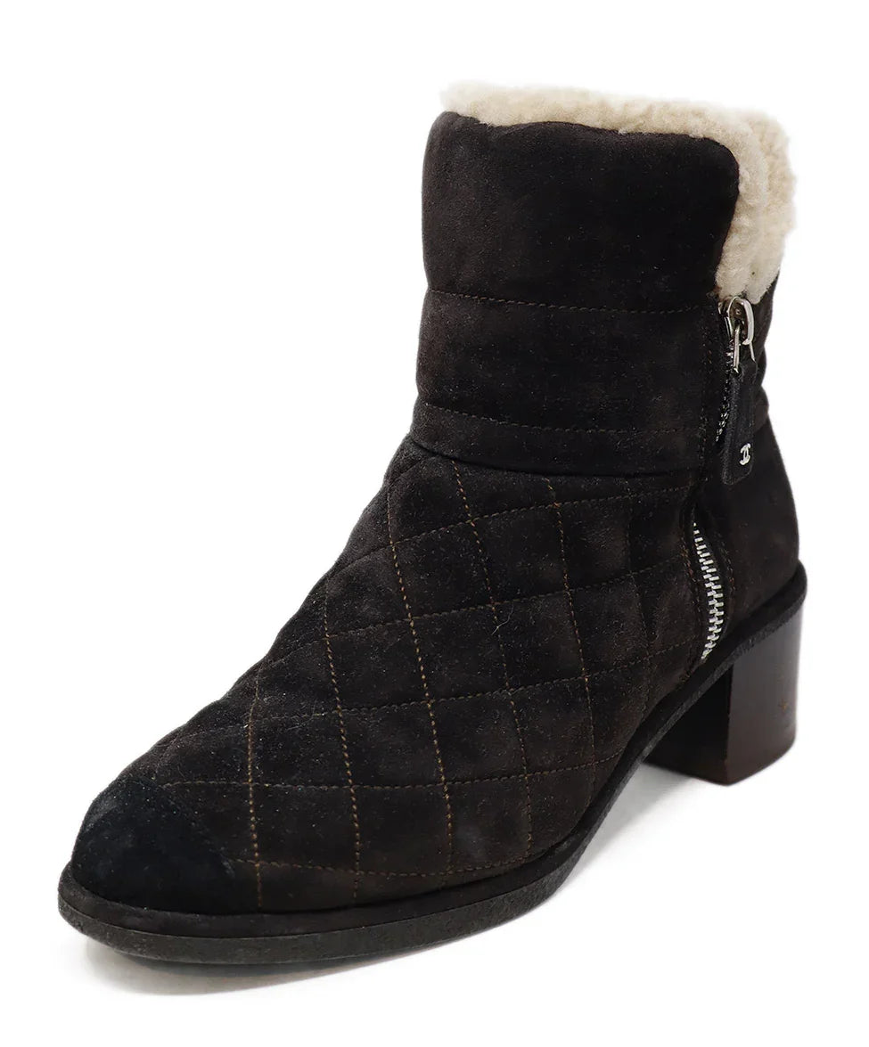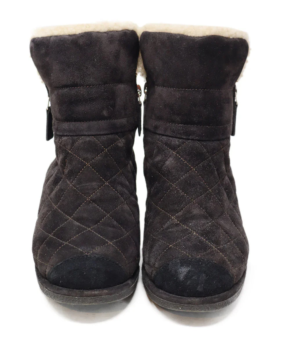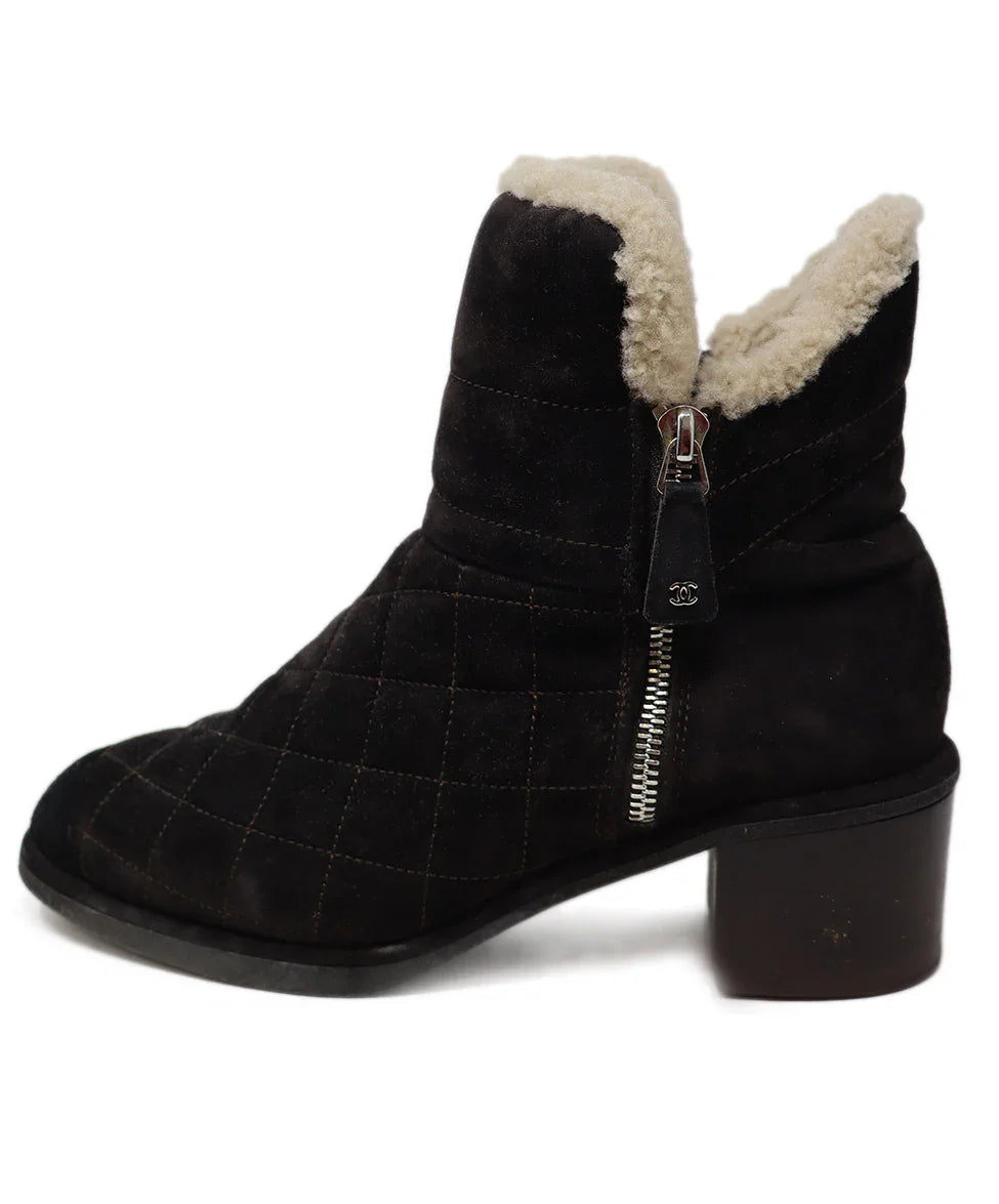 Chanel Brown Suede & Shearling Stitched Booties sz 7