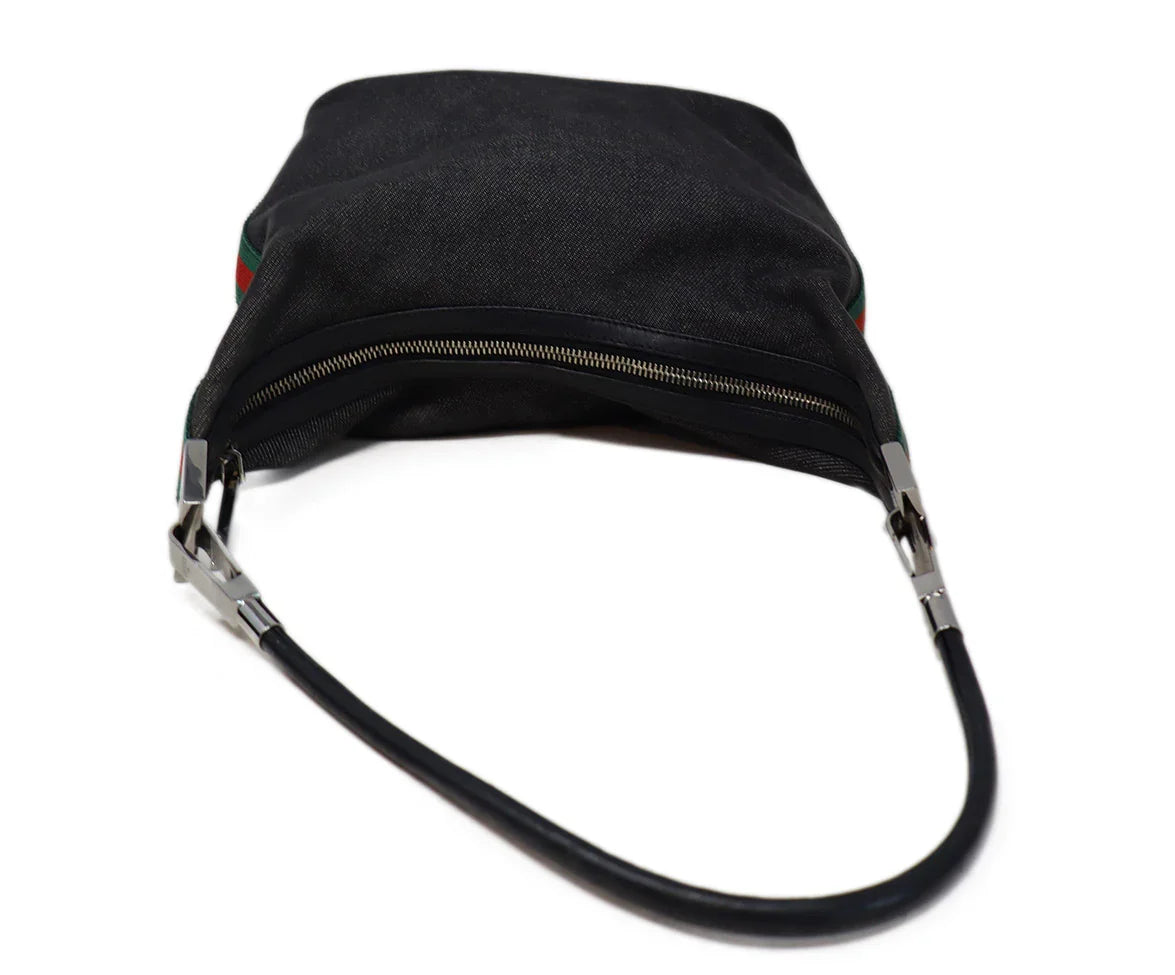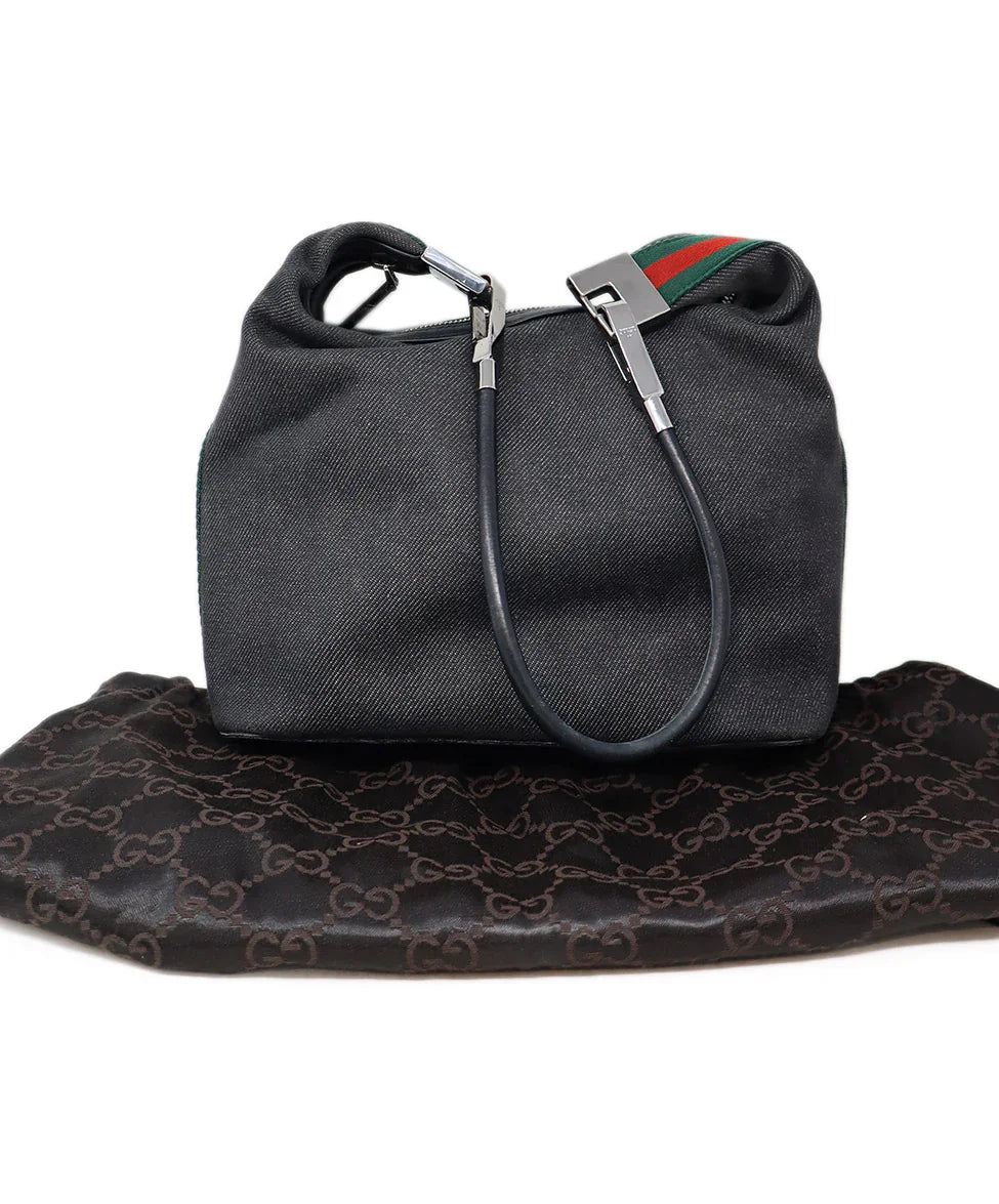 Gucci Black Denim Sherry Stripe Shoulder Bag