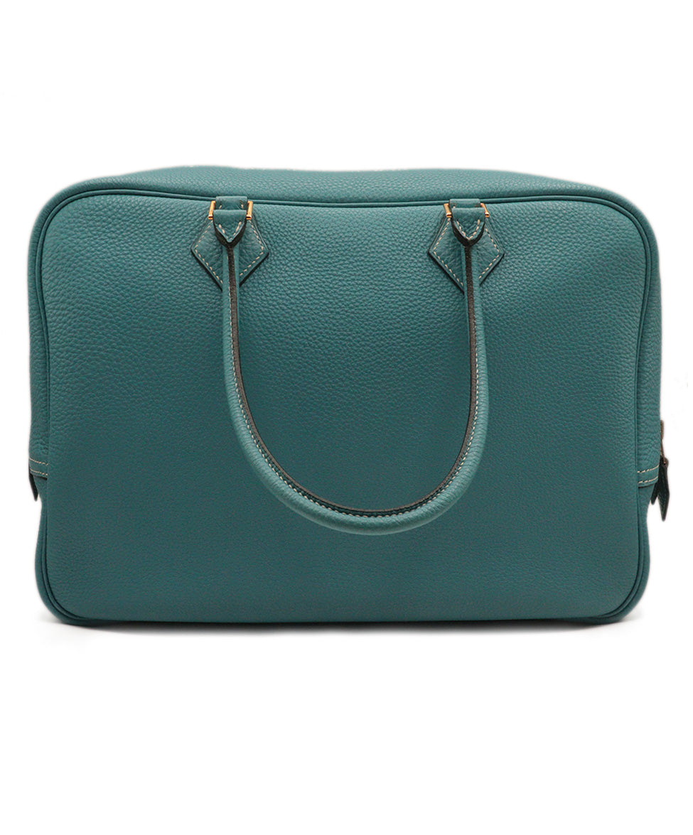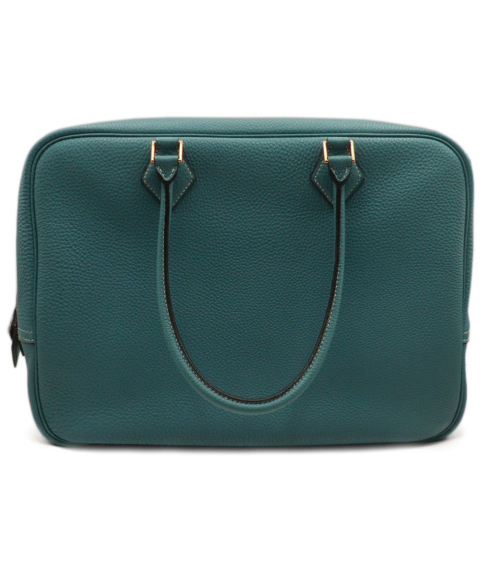 Hermes Blue Leather Plume Satchel Handbag