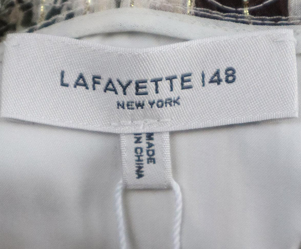 Lafayette Ivory Green & Rust Print Silk Lurex Dress sz 6
