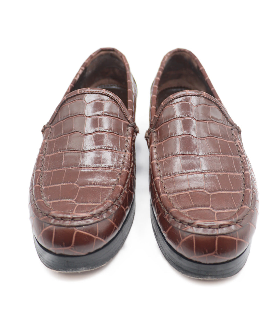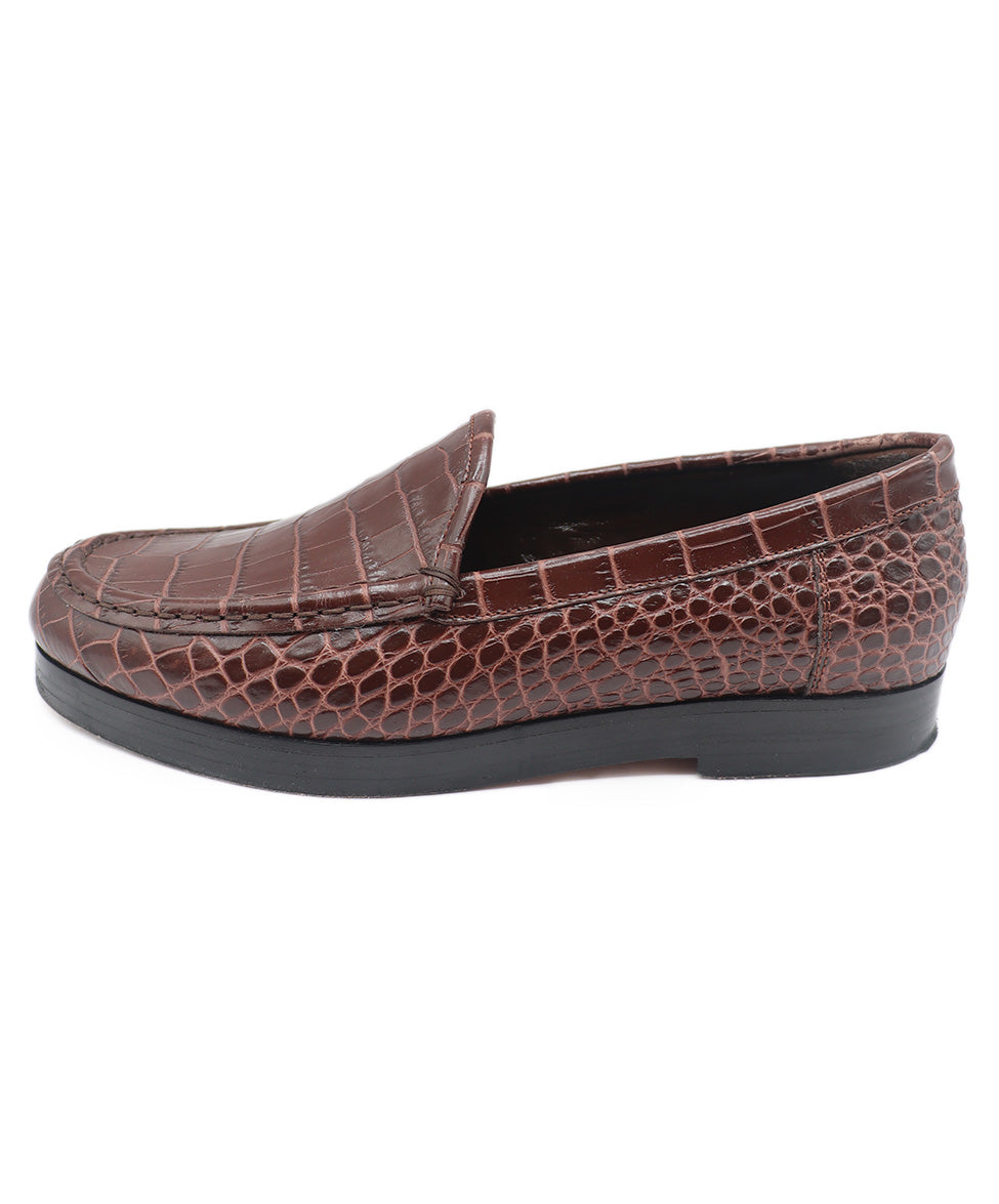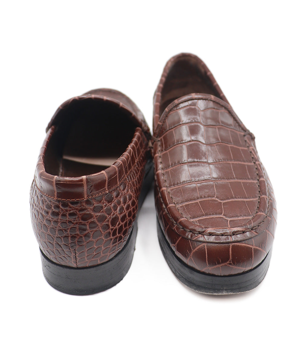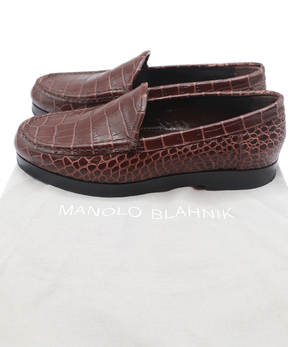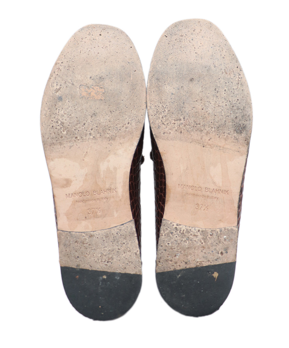 Manolo Blahnik Brown Embossed Crocodile Print Loafers Sz. 7.5
