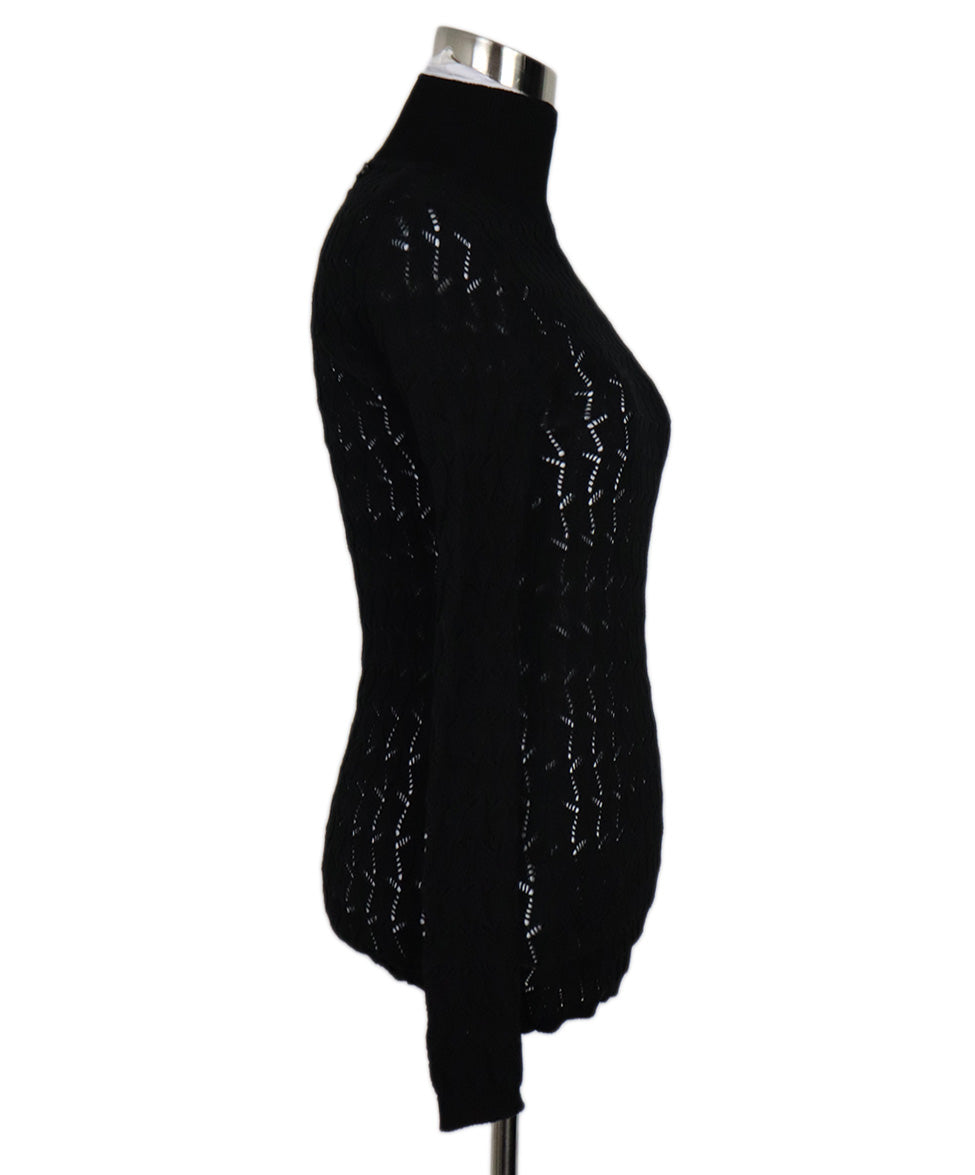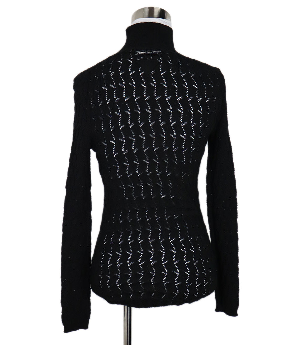 Prada Black Cotton Open Knit Turtleneck sz 2