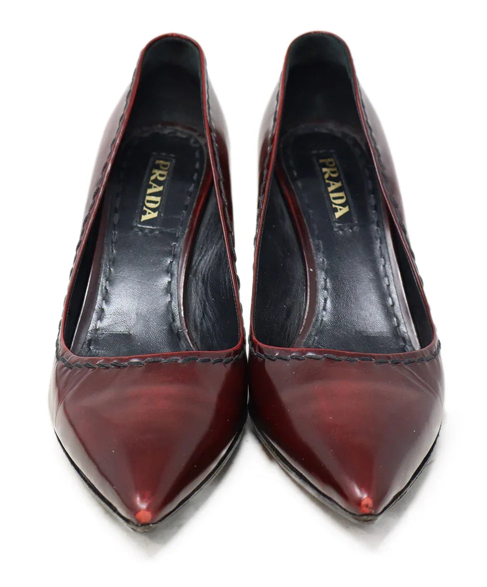 Prada Burgundy Leather Stitched Heels sz 10.5