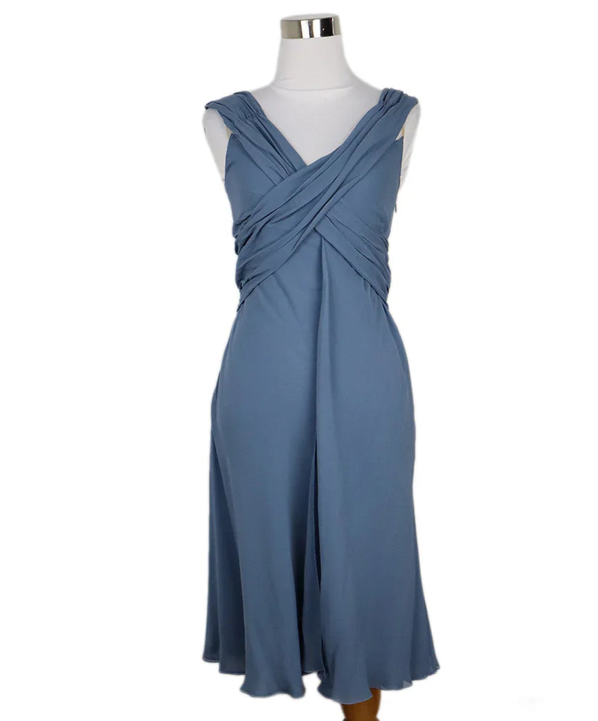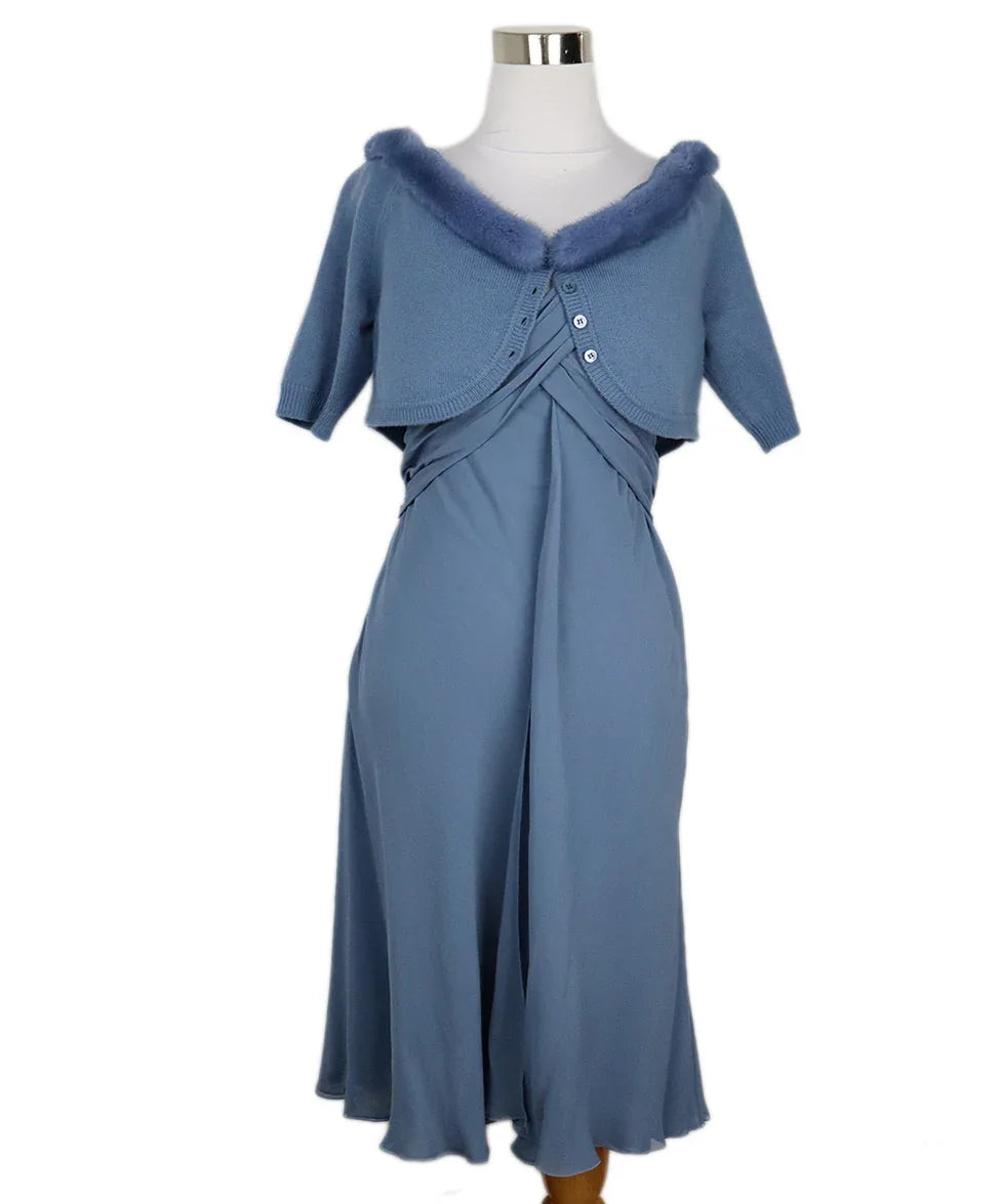 Valentino Blue Silk Dress w/ Cashmere Cardigan sz 4
