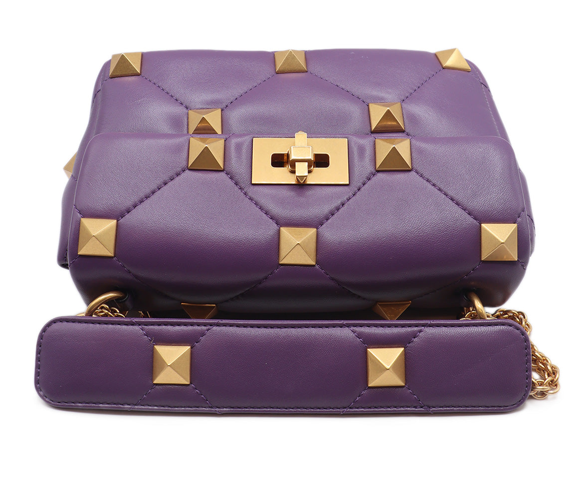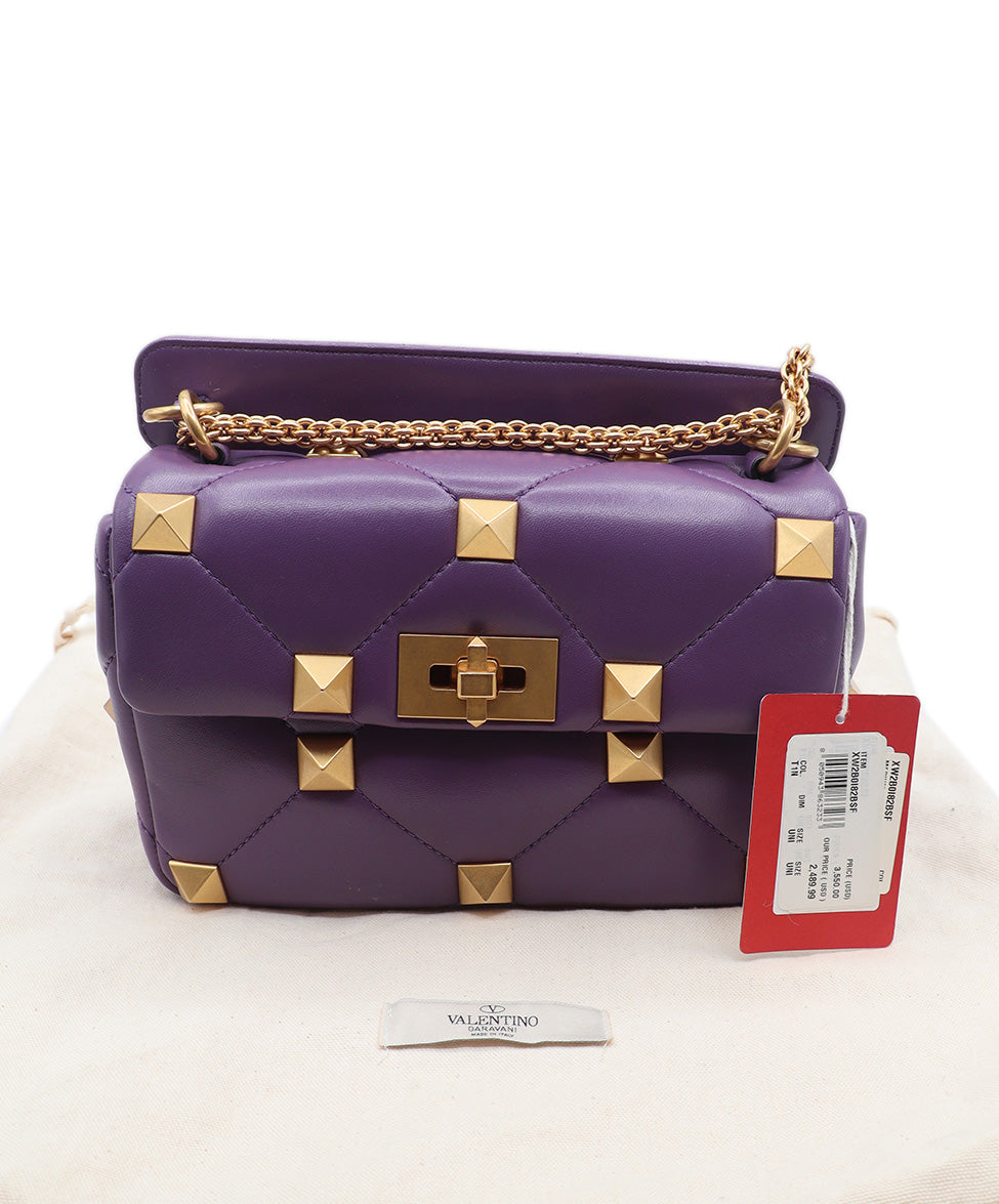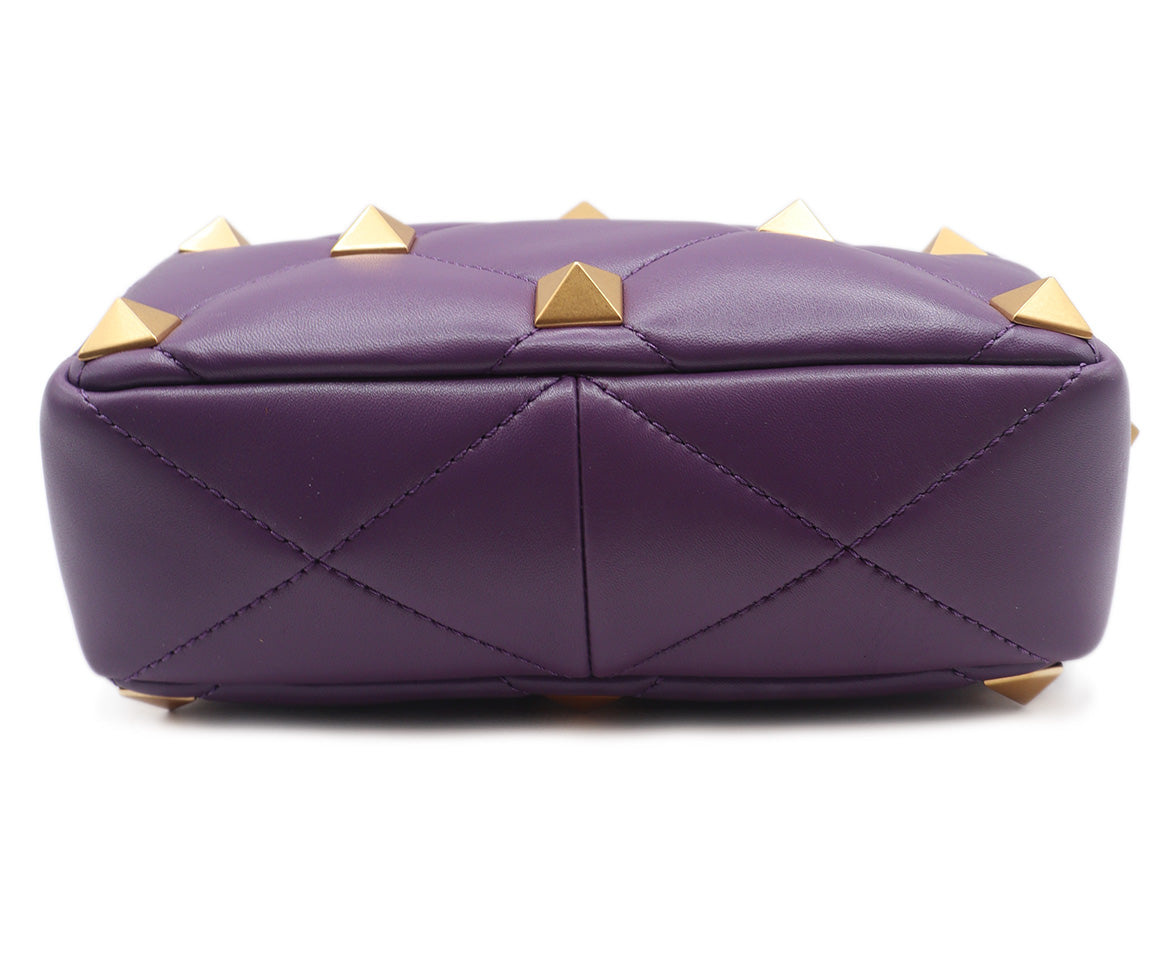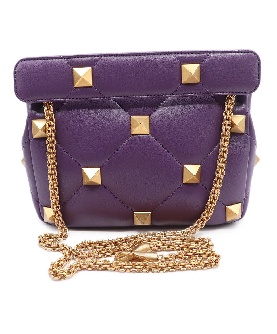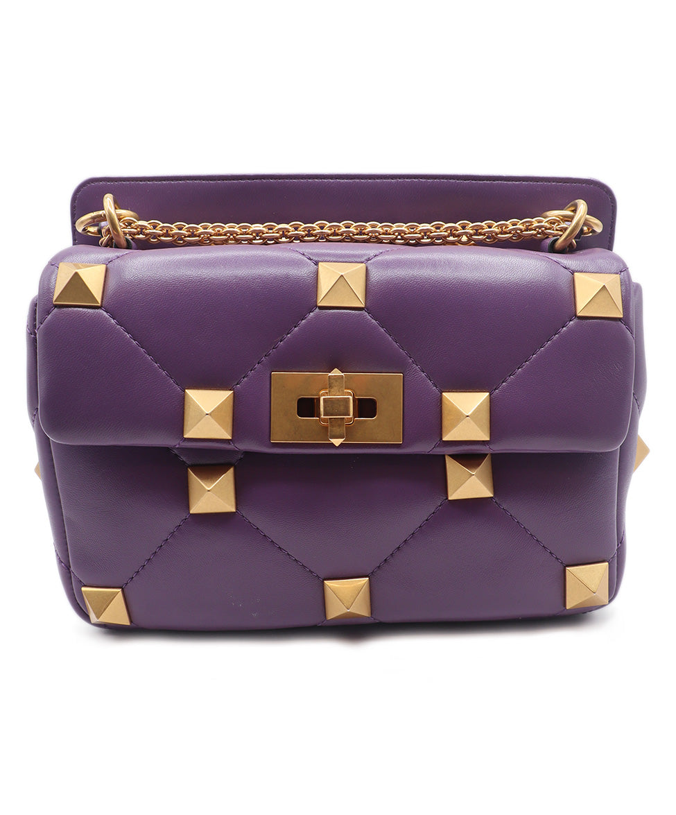 Valentino Purple Leather Gold Studded Handbag